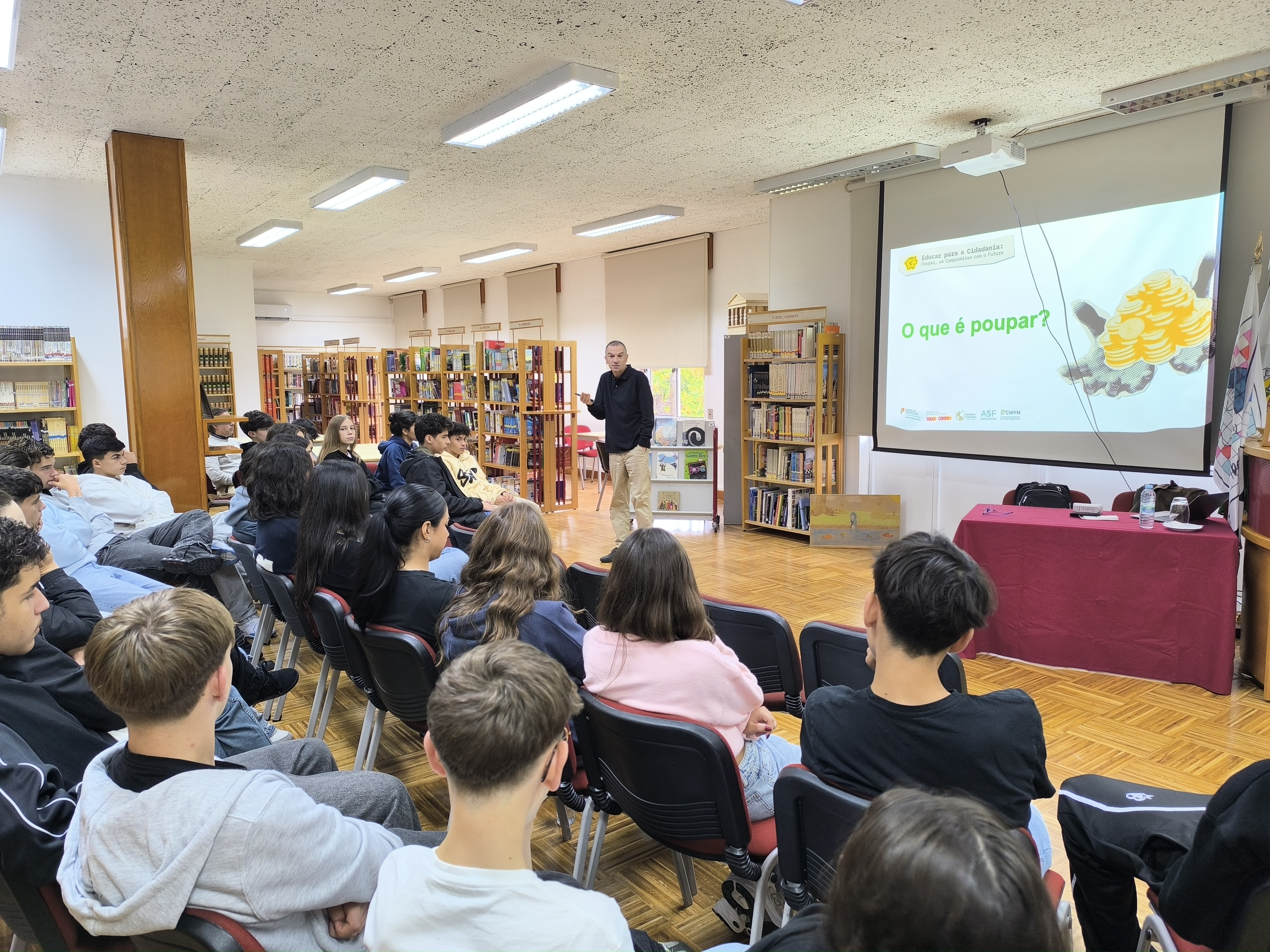 Assim, atendendo às palavras do senhor Ministro da Educação, Ciência e Inovação, Professor Doutor Fernando Alexandre, «Saber gerir dinheiro, compreender decisões económicas e fazer escolhas conscientes, com o olhar no futuro, são competências fundamentais para a vida adulta e em sociedade. Quanto mais cedo começarmos a desenvolvê-las, mais preparados estaremos para enfrentar os desafios do futuro e contribuir para uma sociedade mais equilibrada e sustentável », a Coordenação da Estratégia de Educação para a Cidadania do AEPAS, convidou o Professor Doutor Manuel José Lopes Nunes para promover uma sessão de esclarecimento sobre a temática junto de alunos do 9º ano.
