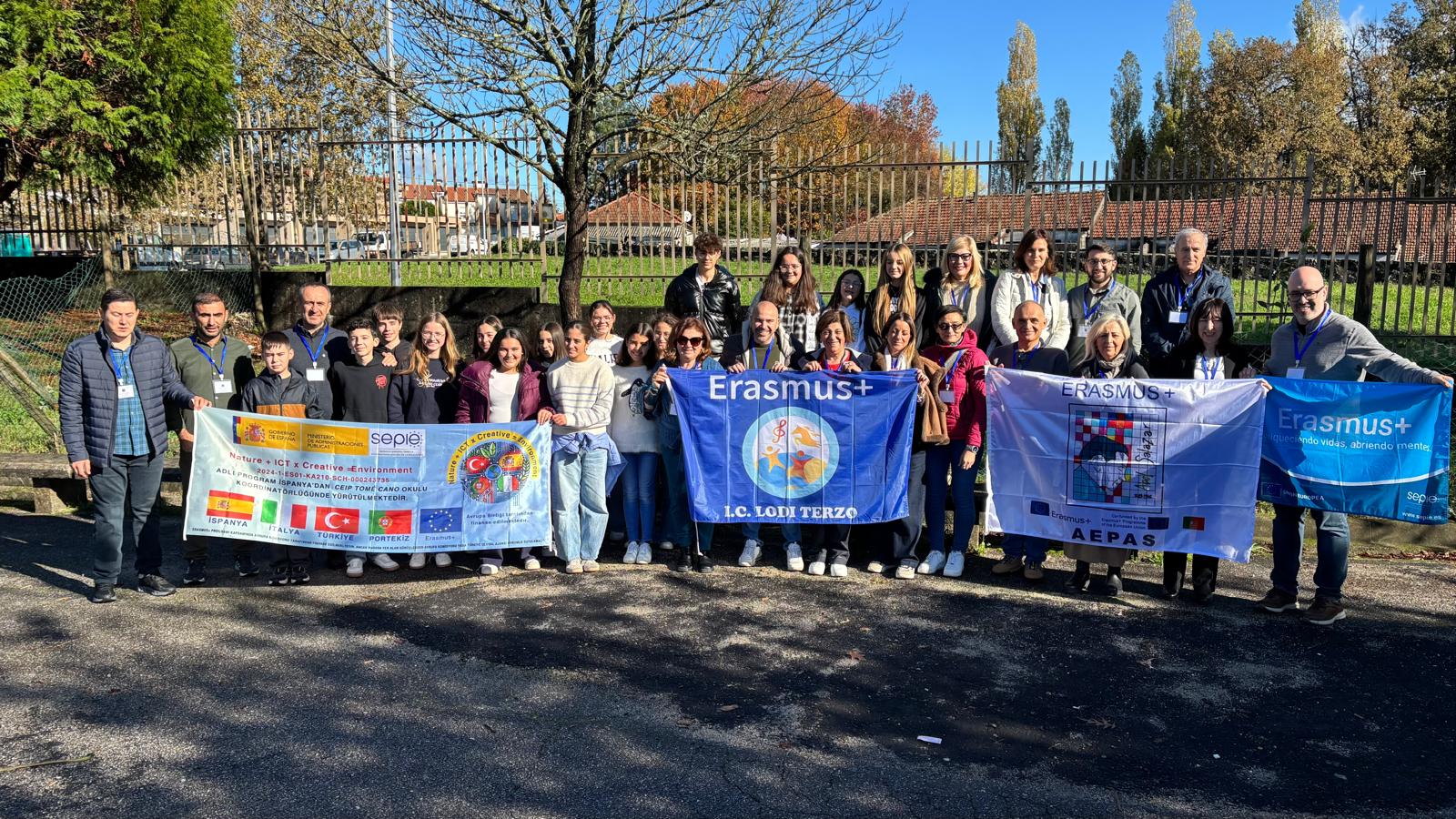 De 17 a 21 de novembro, o Agrupamento de Escolas Professor Abel Salazar recebeu as delegações Erasmus da Turquia, Itália e Tenerife, no âmbito do projeto europeu Erasmus+ Nature + ICT × Creative = Environment². Durante cinco dias, professores destes países participaram em atividades que juntaram criatividade, tecnologia, natureza e intercâmbio cultural. A semana começou com a receção oficial e um momento simbólico: a plantação de uma árvore, representando o compromisso ambiental do projeto. Seguiram-se workshops dedicados à escrita criativa digital, storytelling, multimédia e partilha de boas práticas pedagógicas entre docentes dos quatro países. O ponto alto das atividades ao ar livre foi a visita ao Parque Nacional da Peneda-Gerês, onde os participantes recolheram sons e inspirações naturais para exercícios de escrita criativa. A componente cultural incluiu ainda uma visita guiada à cidade de Guimarães, passando pelo Castelo, Paço dos Duques e Montanha da Penha, bem como uma receção oficial na Câmara Municipal. A mobilidade terminou com a reunião de coordenação e a entrega de certificados, reforçando o espírito de cooperação internacional e o compromisso conjunto com práticas educativas inovadoras e sustentáveis. A receção calorosa da comunidade escolar permitiu não só a troca de experiências educativas, mas também o fortalecimento dos laços entre os diversos países envolvidos. O Agrupamento de Escolas Professor Abel Salazar reafirmou desta forma, e mais uma vez, o seu compromisso com projetos que promovem a inovação, o intercâmbio cultural e o desenvolvimento de competências essenciais para o futuro.